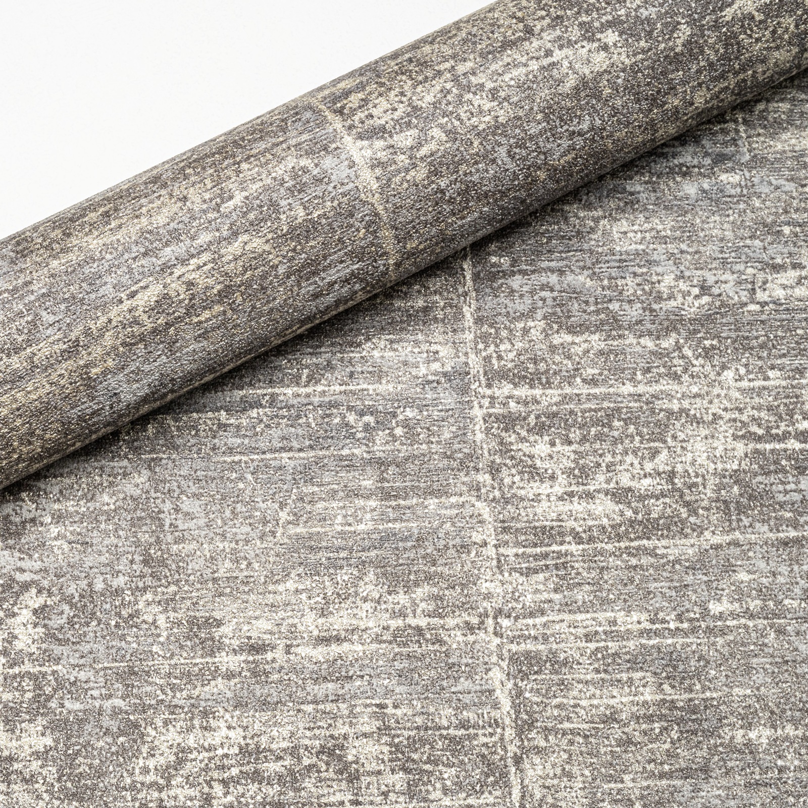 Grey Gold Metallic Stripe Textured Wallpaper