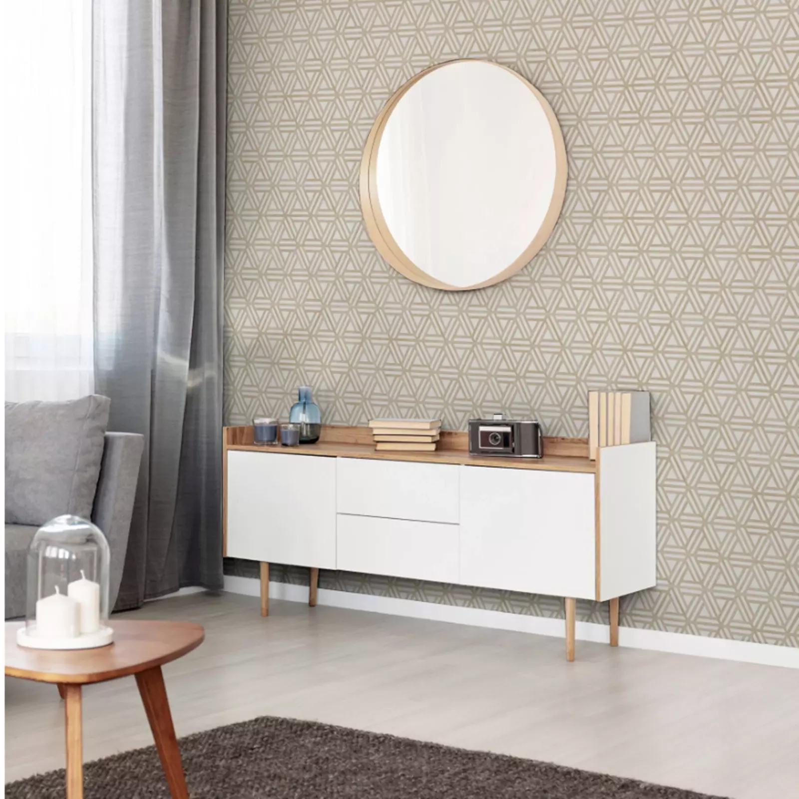 Arthouse Wallpaper 923704, known as Japandi Wood Natural, embodies the serene elegance of Japandi design. Its geometric trellis pattern, rendered in a light wood tone with realistic woodgrain and subtle shading, creates a sophisticated 3D effect on a soft cream background. This paste-the-paper wallpaper is ideal for feature walls in living rooms or bedrooms, offering a calming, nature-inspired aesthetic. Each roll measures 10.05 meters in length and 53 centimeters in width, with a straight pattern match and a 53-centimeter repeat. Spongeable and easy to apply, it seamlessly blends traditional craftsmanship with contemporary style, enhancing any interior with its minimalist charm .