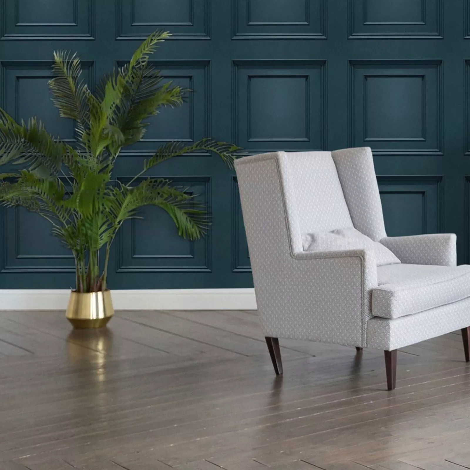 The Belgravia Decor Oliana Panel Wallpaper (8491) is a sophisticated wallcovering that emulates the elegance of traditional wood panelling. Rendered in a rich navy hue, it features a 3D effect achieved through meticulous shading and detailing, creating a realistic panelled appearance. The wallpaper boasts a smooth matte finish, adding a touch of luxury to any room. Each roll measures 10.05 meters in length and 53 centimeters in width, covering approximately 5.3 square meters. With a pattern repeat of 53 centimeters and a straight match, it ensures a seamless look upon application. This design is ideal for living rooms, bedrooms, and hallways, offering a timeless aesthetic that complements both modern and classic interiors. Application requires pasting the paper, and the wallpaper is washable for easy maintenance. However, it’s not recommended for use in bathrooms or kitchens due to moisture considerations