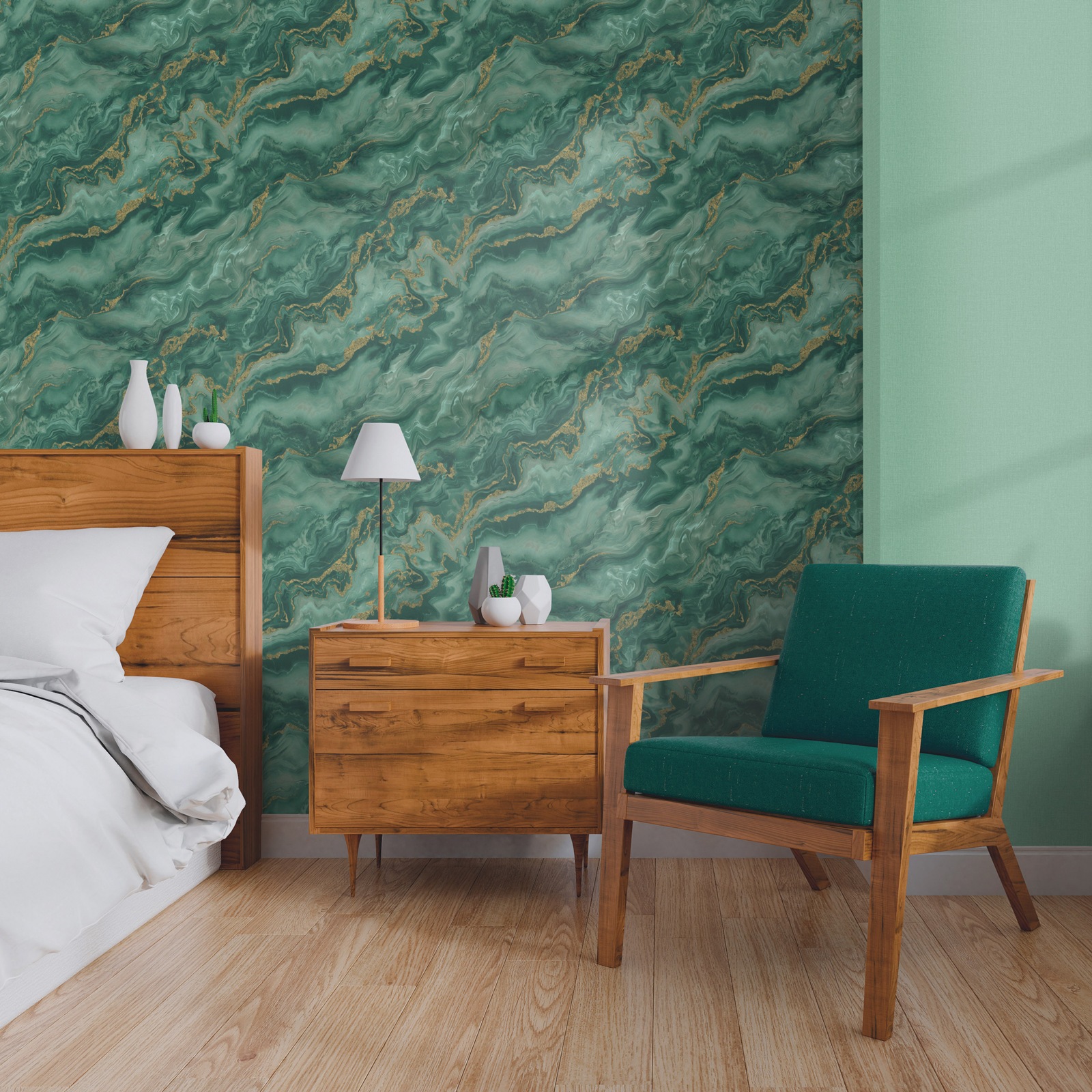This Mystic Spell Marble Textured Vinyl Wallpaper will make a glamourous statement on your walls. The design features a freshly cut stone structure with a marbled effect in tones of green to create the look of a semi-precious stone with beaded metallic gold glitter elements to give it that added level of luxury. This design is on a high quality and hardwearing textured paper which can be easily applied by pasting the wall.