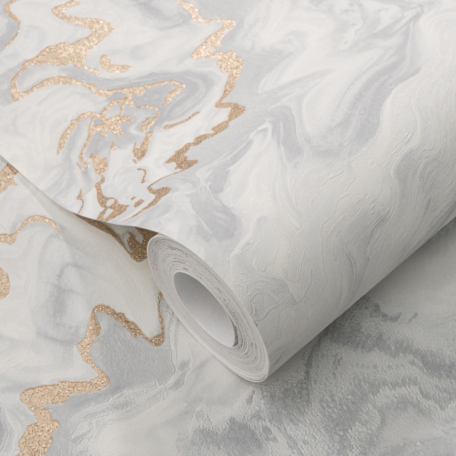 Erismann’s Soft Grey White Textured Marble Effect Metallic Gold Shimmer Vinyl Wallpaper