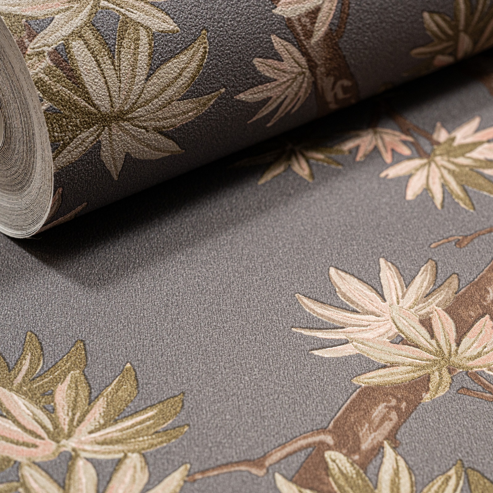 Charcoal Floral Wallpaper Acer Tree Leaves Textured Vinyl Paste The Wall Feature