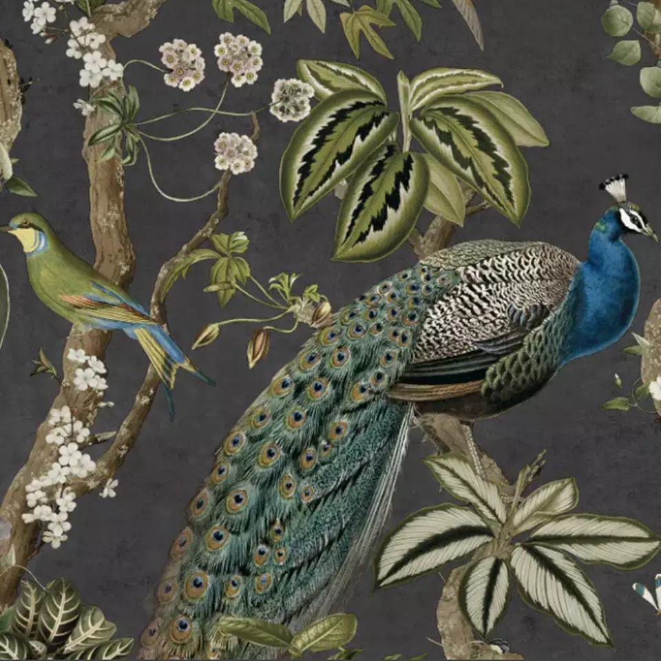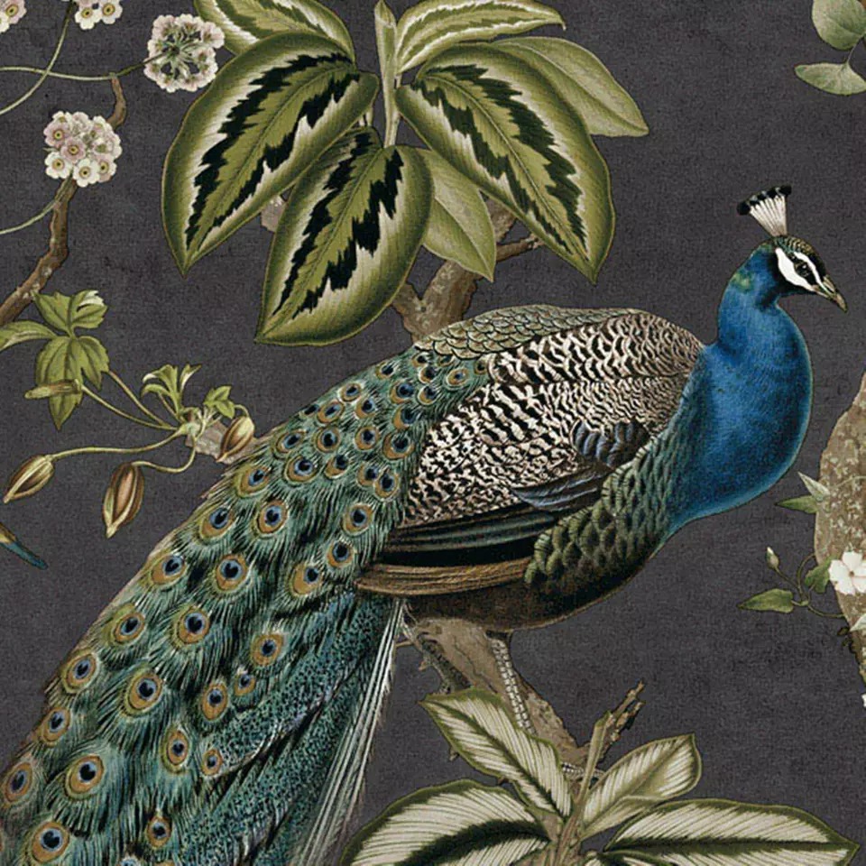 Charcoal Peacock Woods Wallpaper