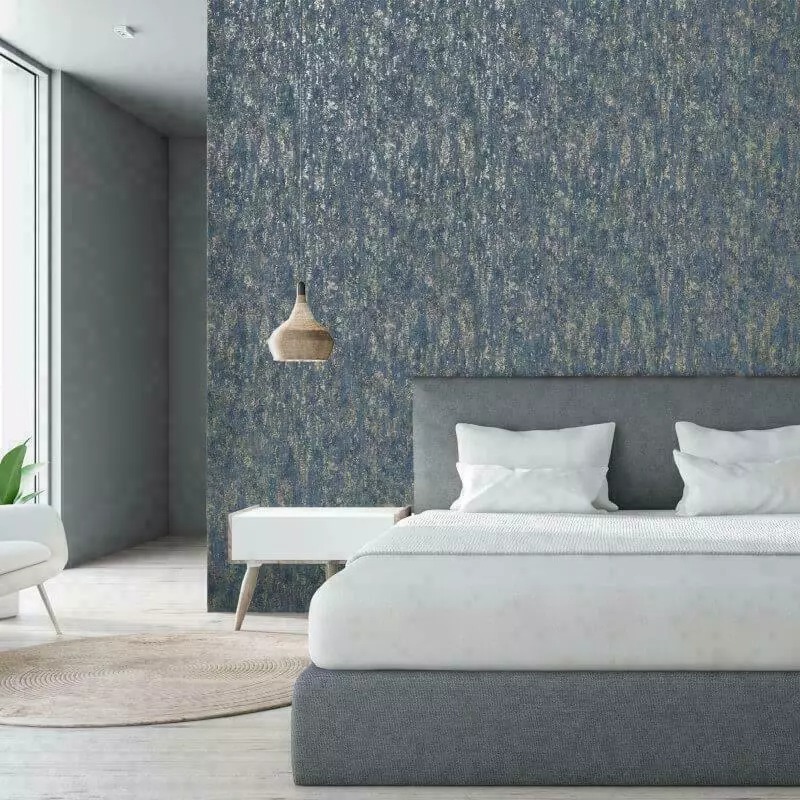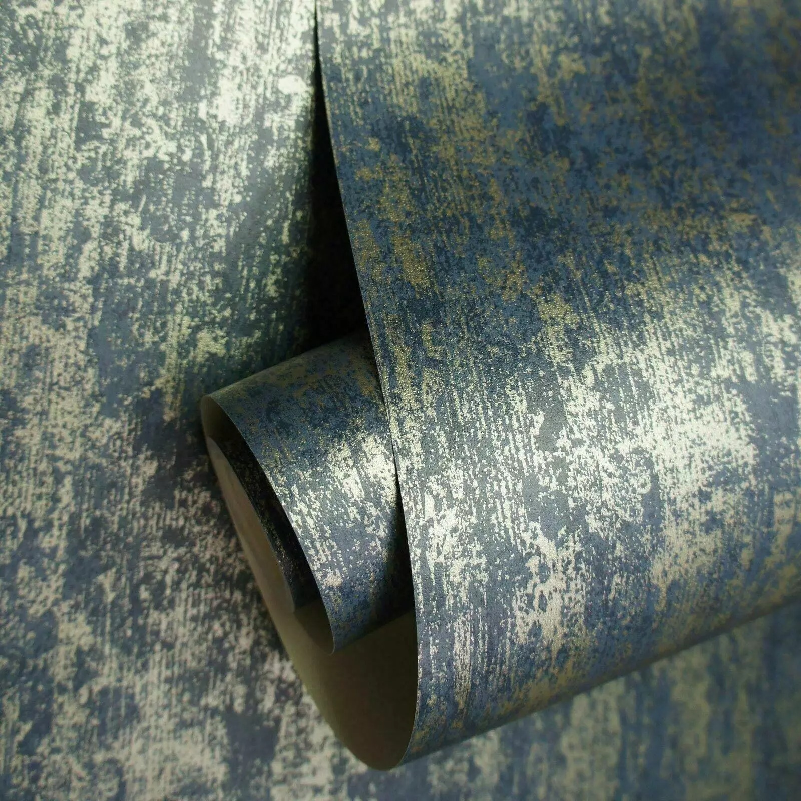 Gold Navy Blue Metallic Industrial Texture Wallpaper