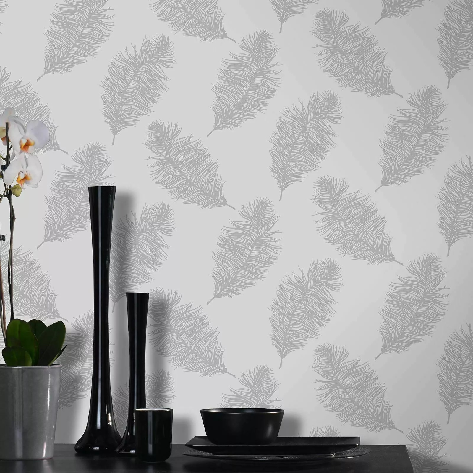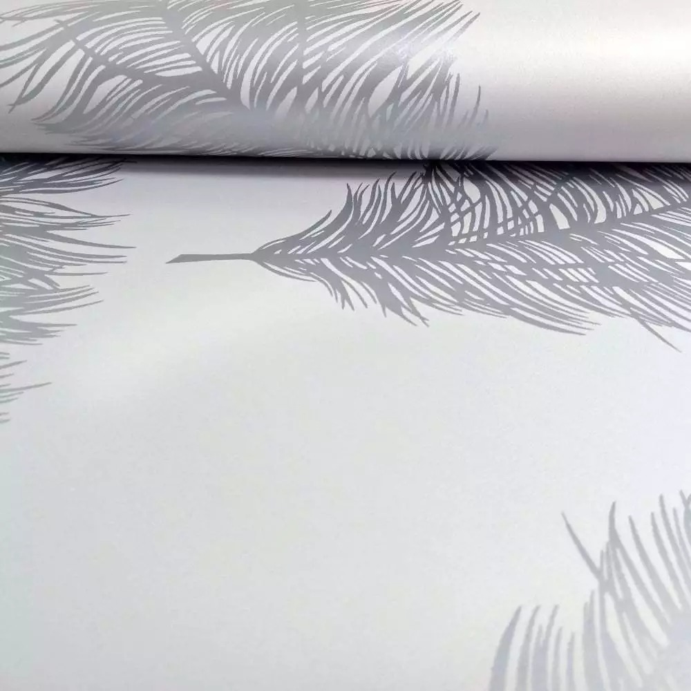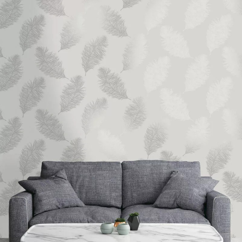 Grey Silver Fawning Feather Metallic Shimmer Wallpaper