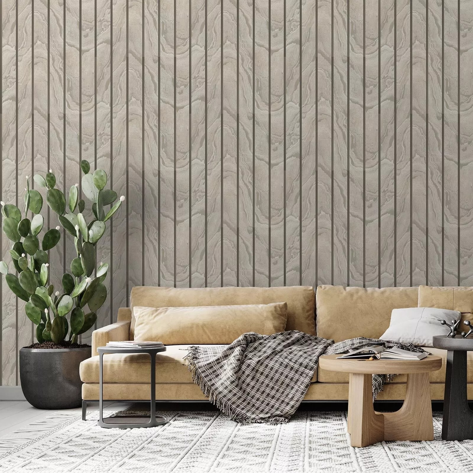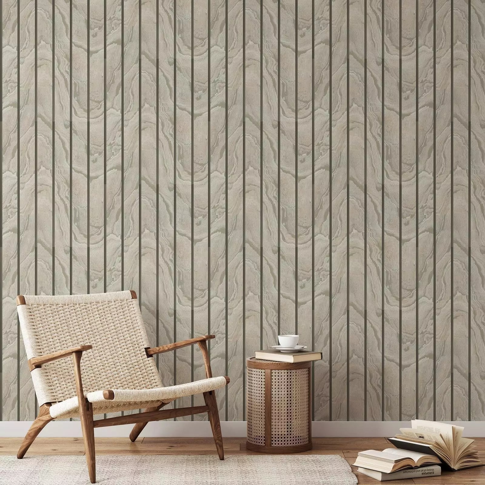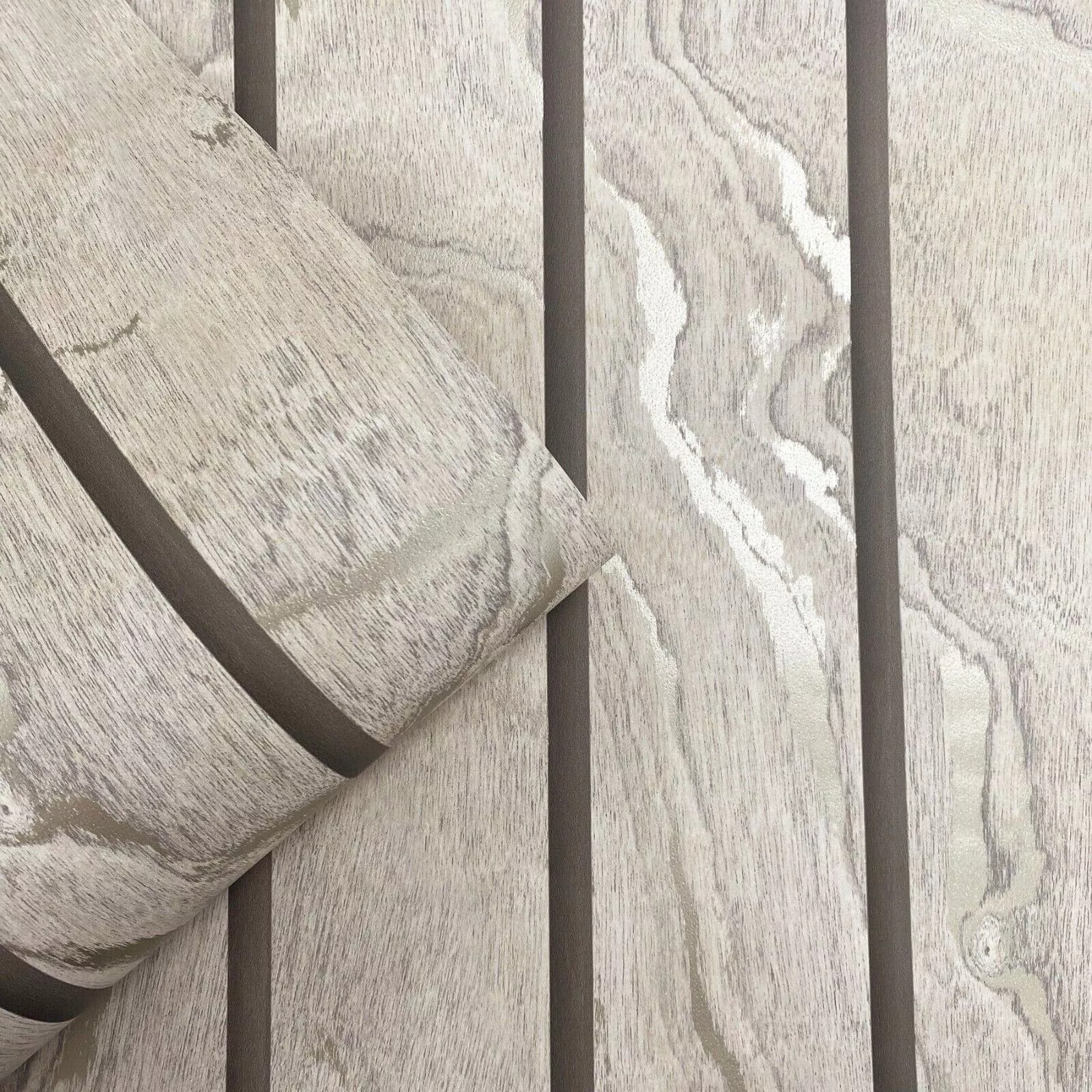Woodgrain Panel Marble Wood Slats Effect Wallpaper