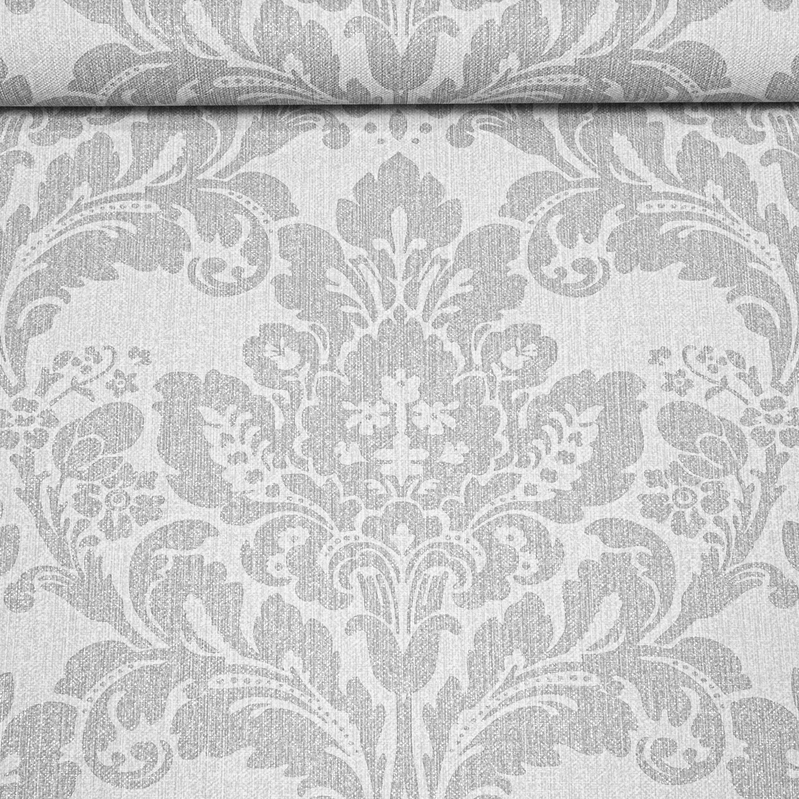 Grey Floral Silver Metallic Shimmer Damask Pattern Wallpaper