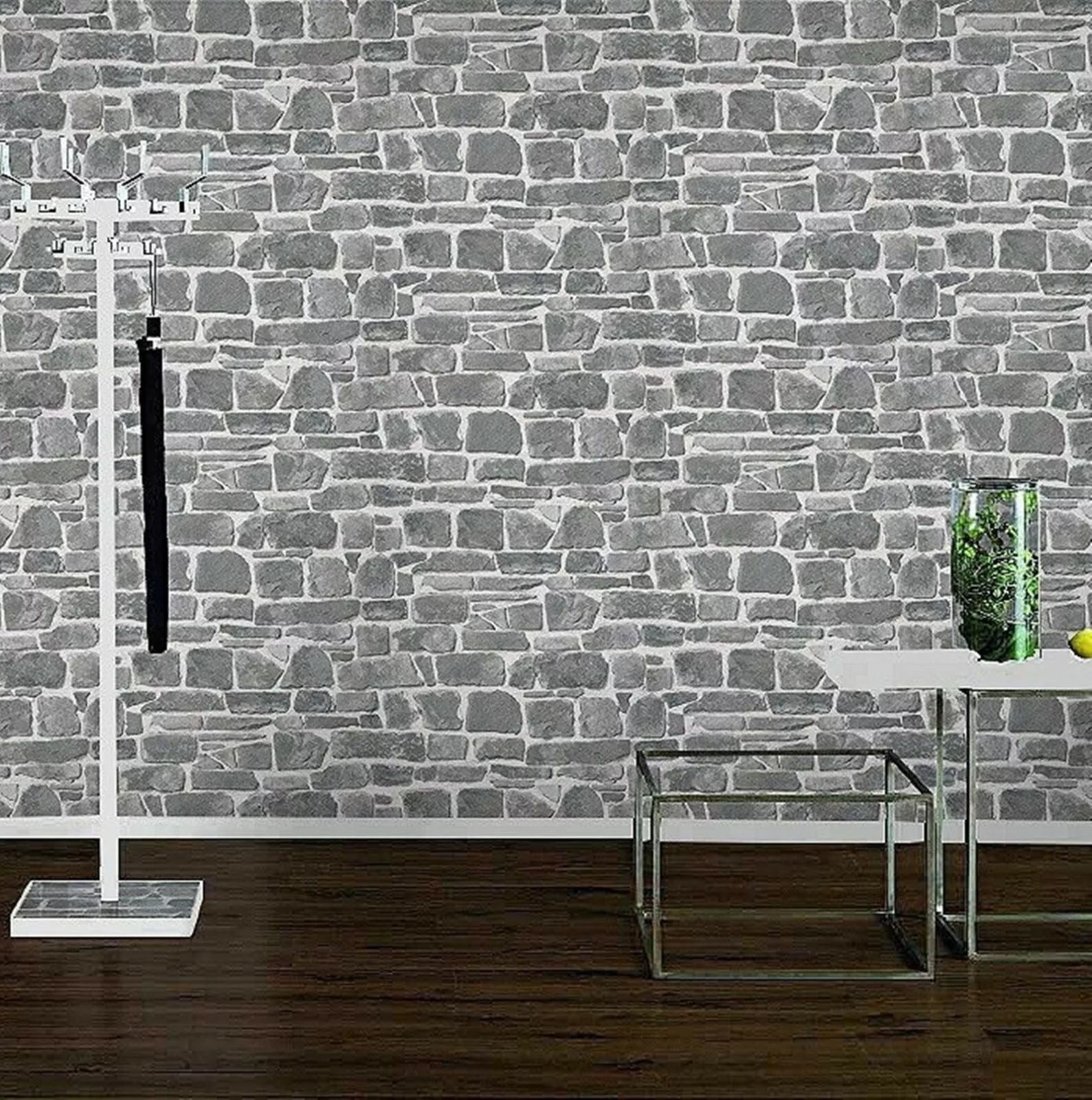 Rasch Brick Stone Wall Effect Wallpaper Light Grey