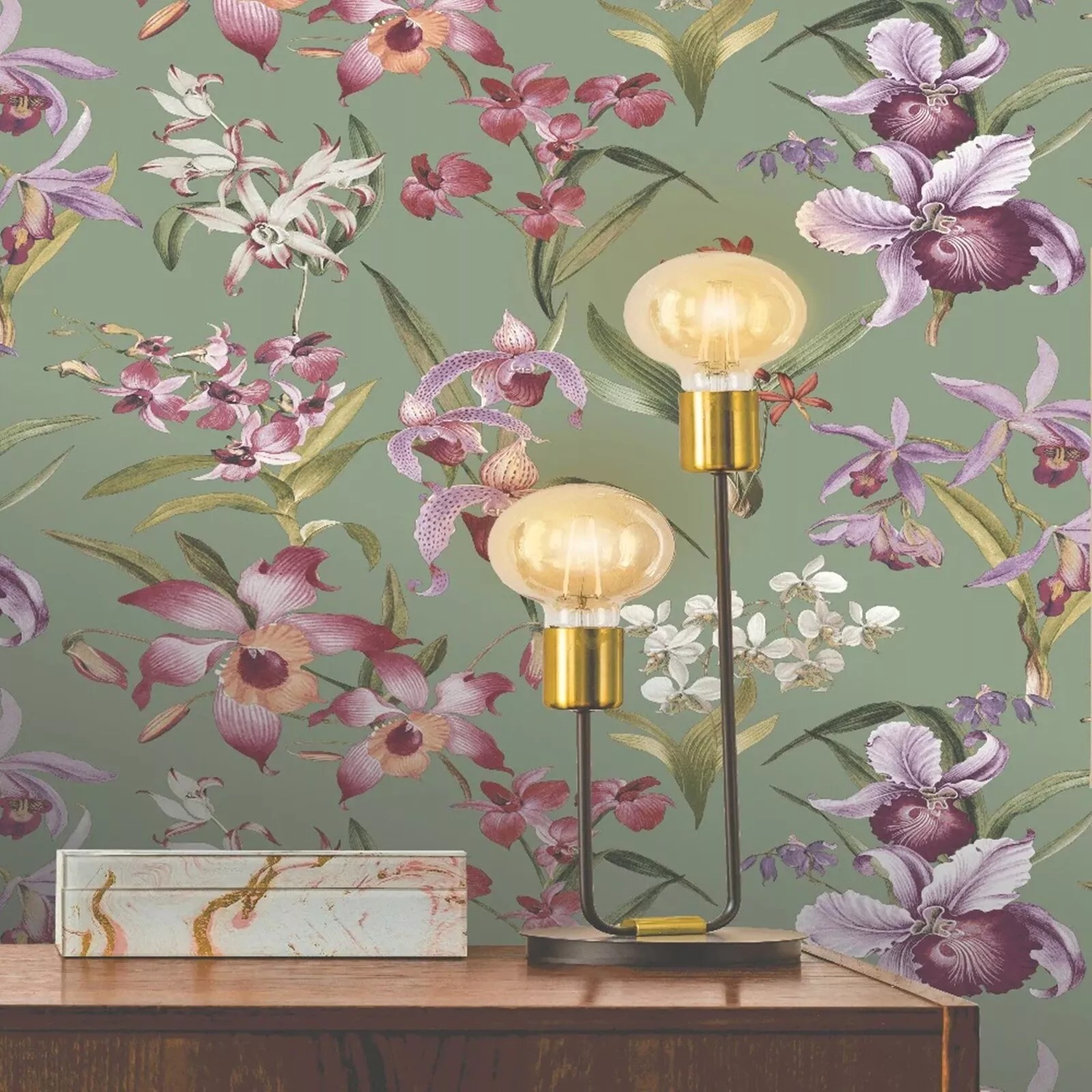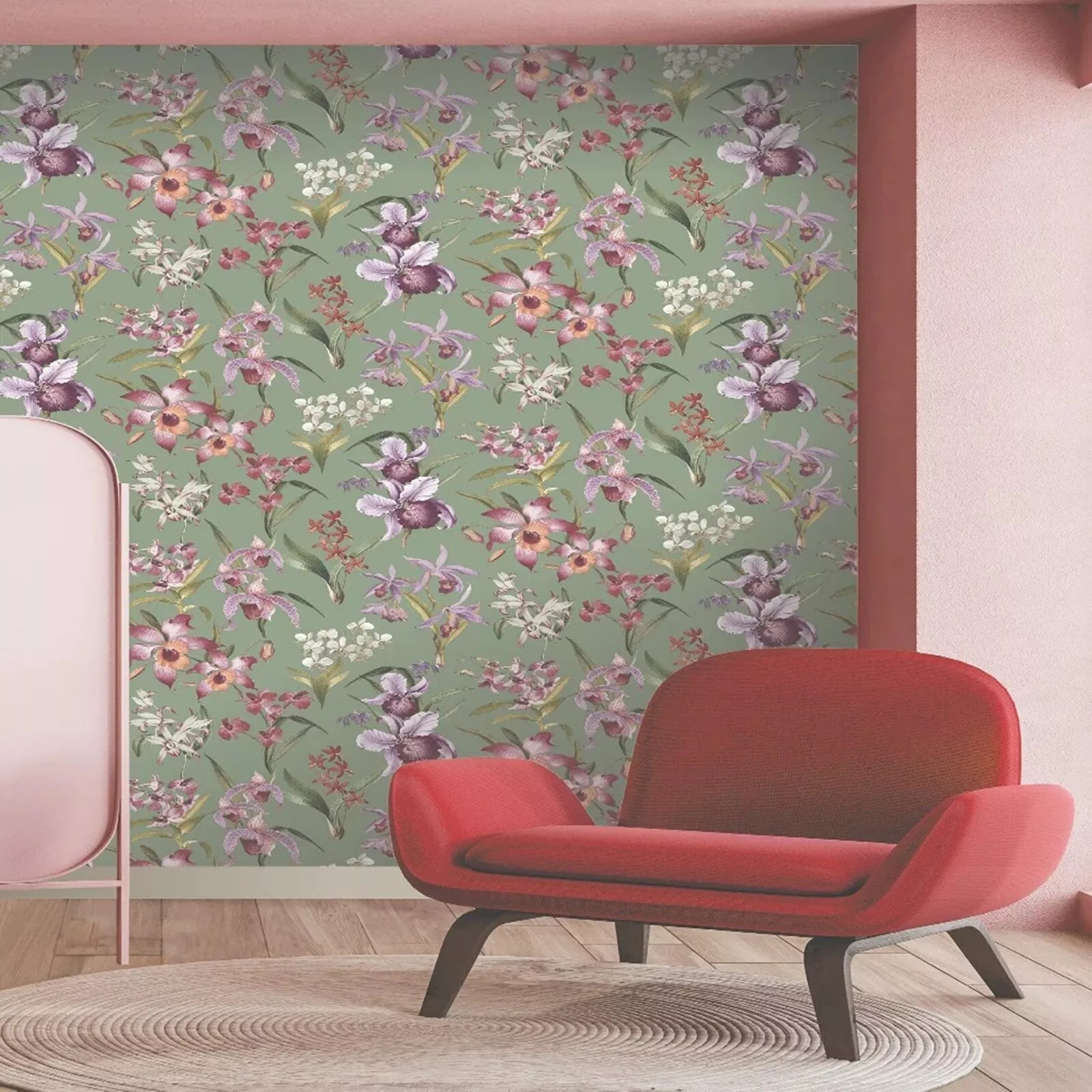 Rasch Floral Orchid Wallpaper Green Purple Pink