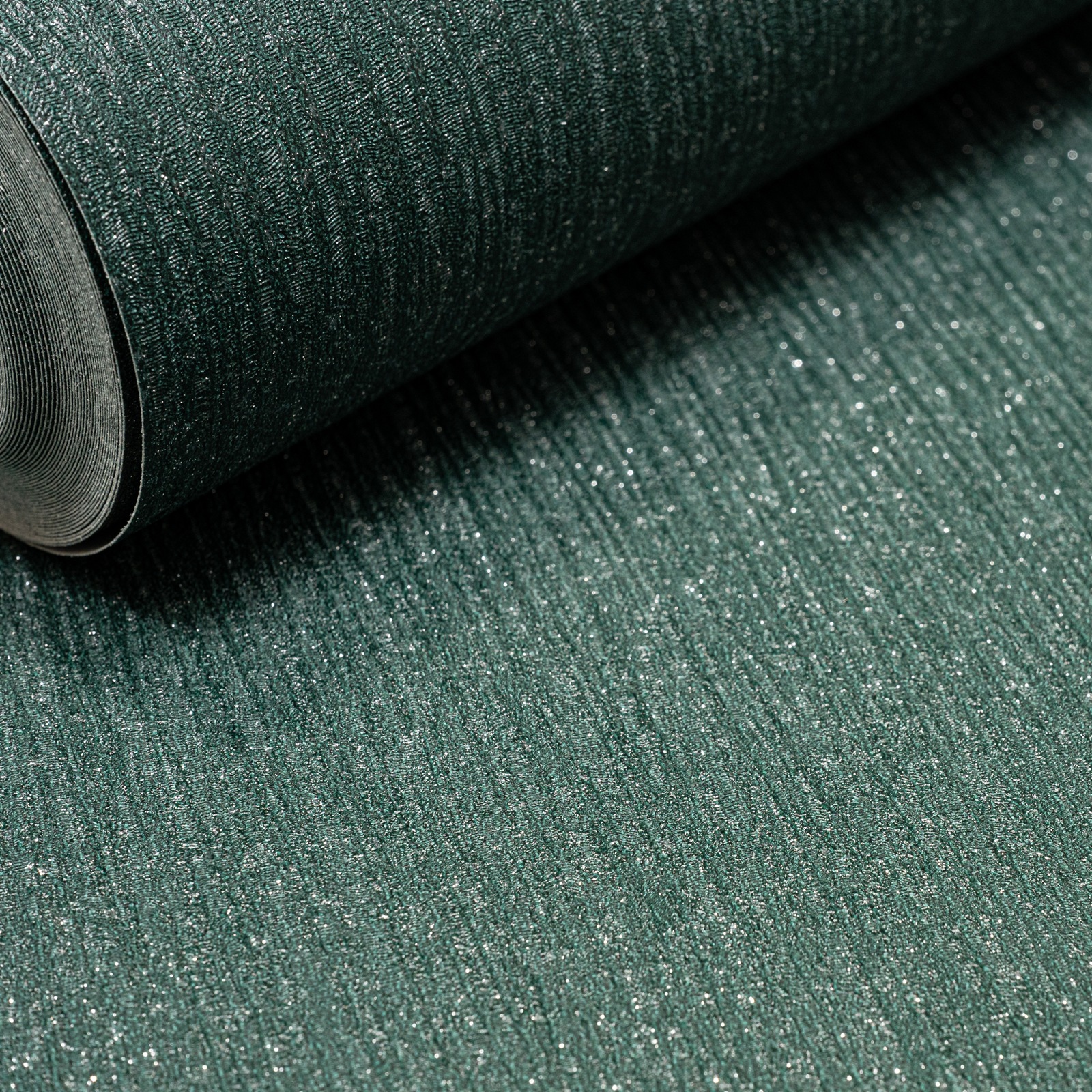 Plain Green Silver Glitter Shimmer Slightly Imperfect Thick Textured Wallpaper