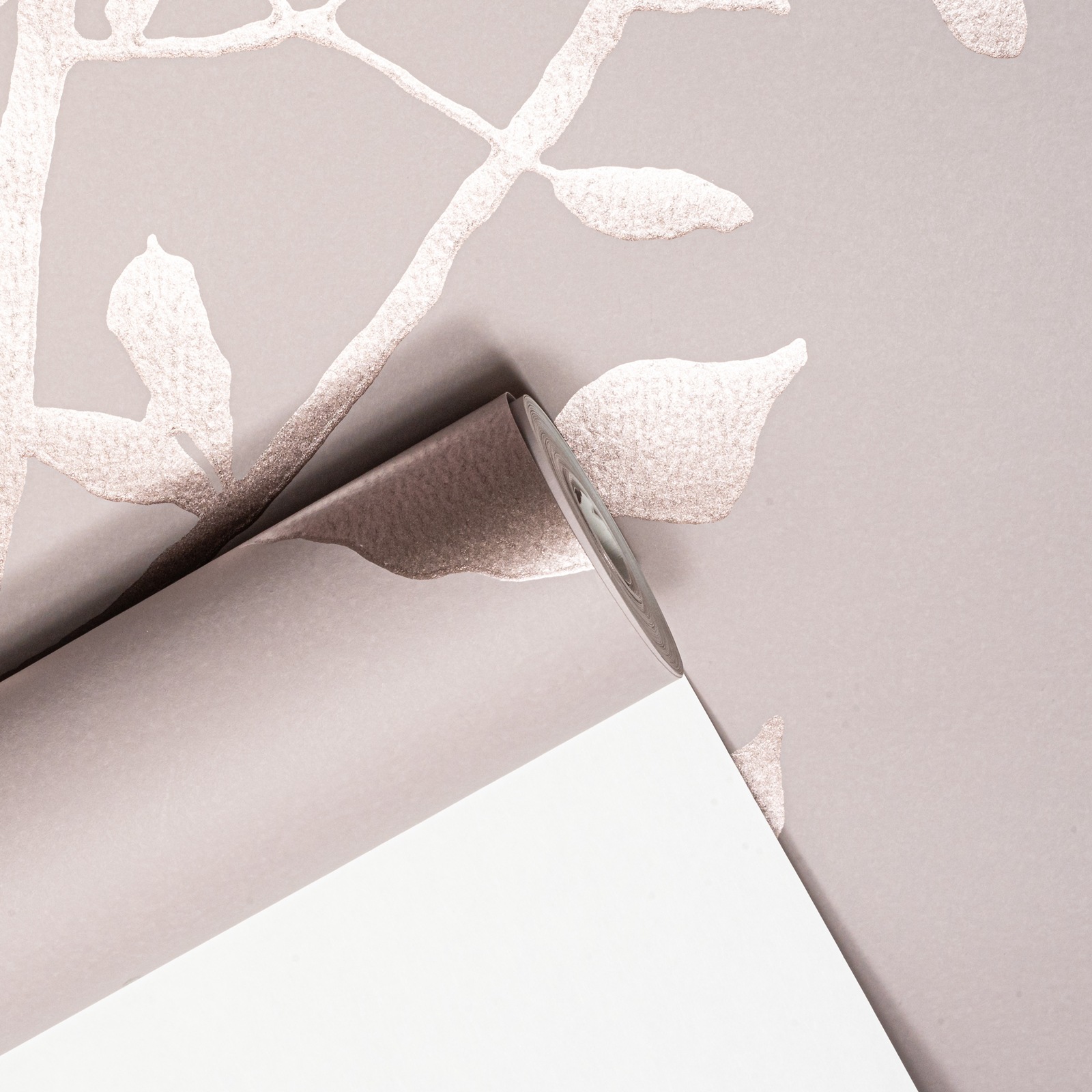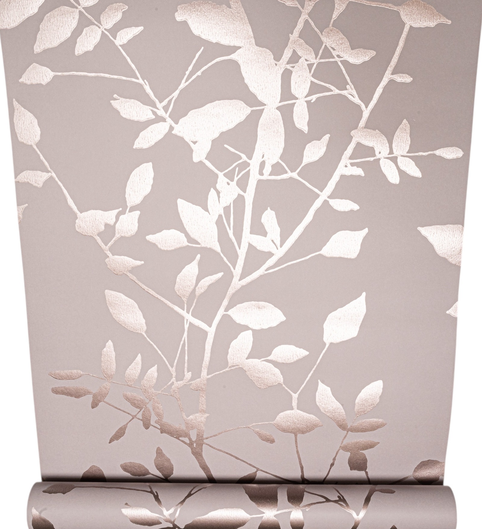 Purple Grey Mix Floral Rose Metallic Shimmer Wallpaper