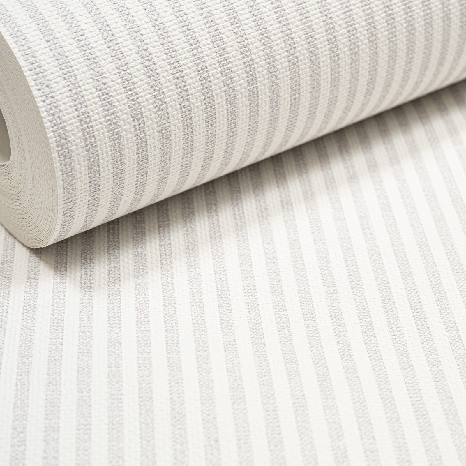 Pale Grey & White Stripe Wallpaper Textured Slightly Imperfect