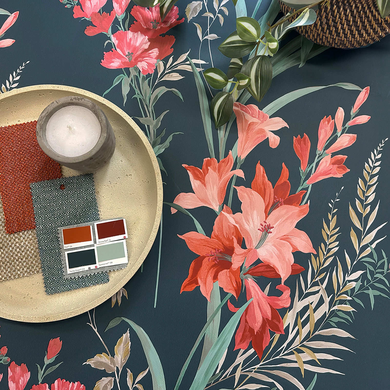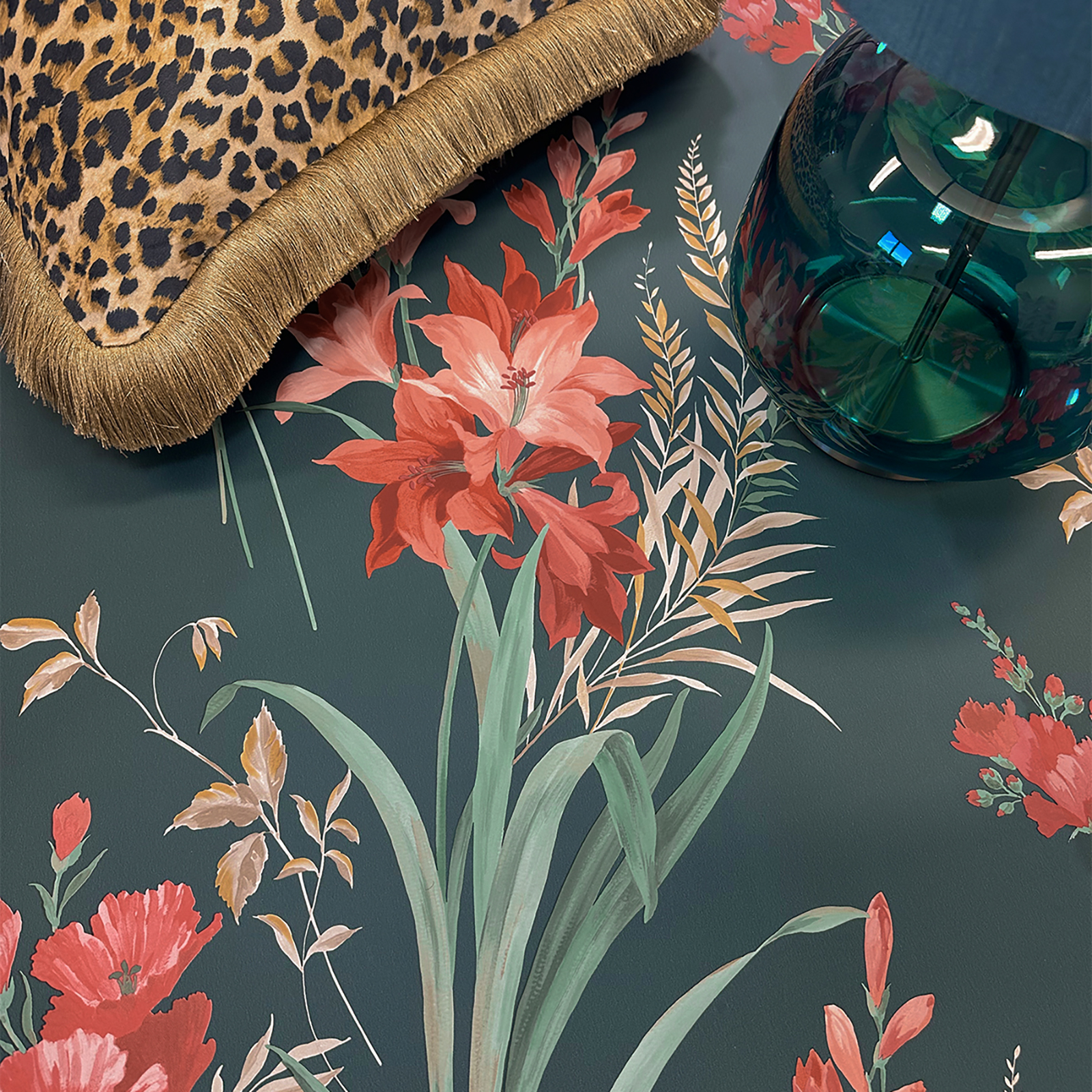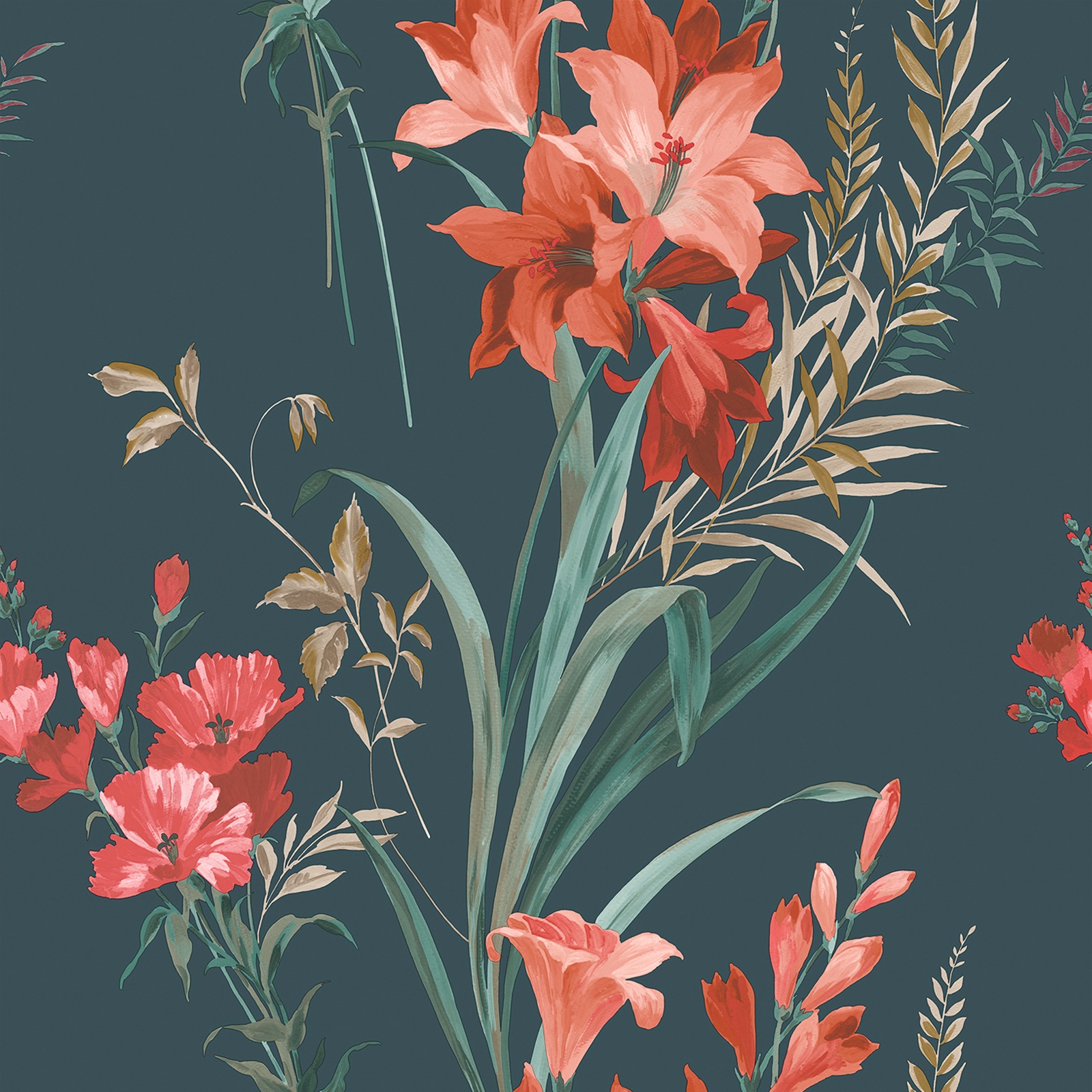 Teal Floral Wallpaper Botanical Foliage Smooth Finish Feature Wall