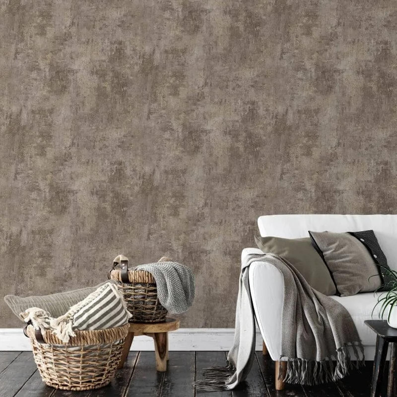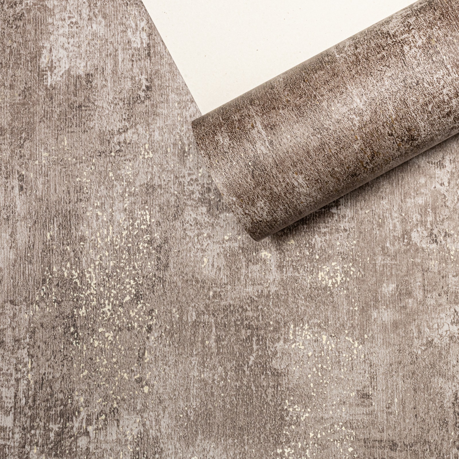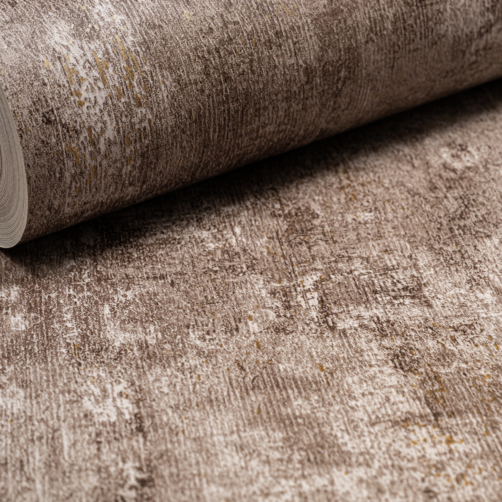 Cove Texture Chocolate Industrial Concrete Effect Wallpaper Gold Metallic Shimmer