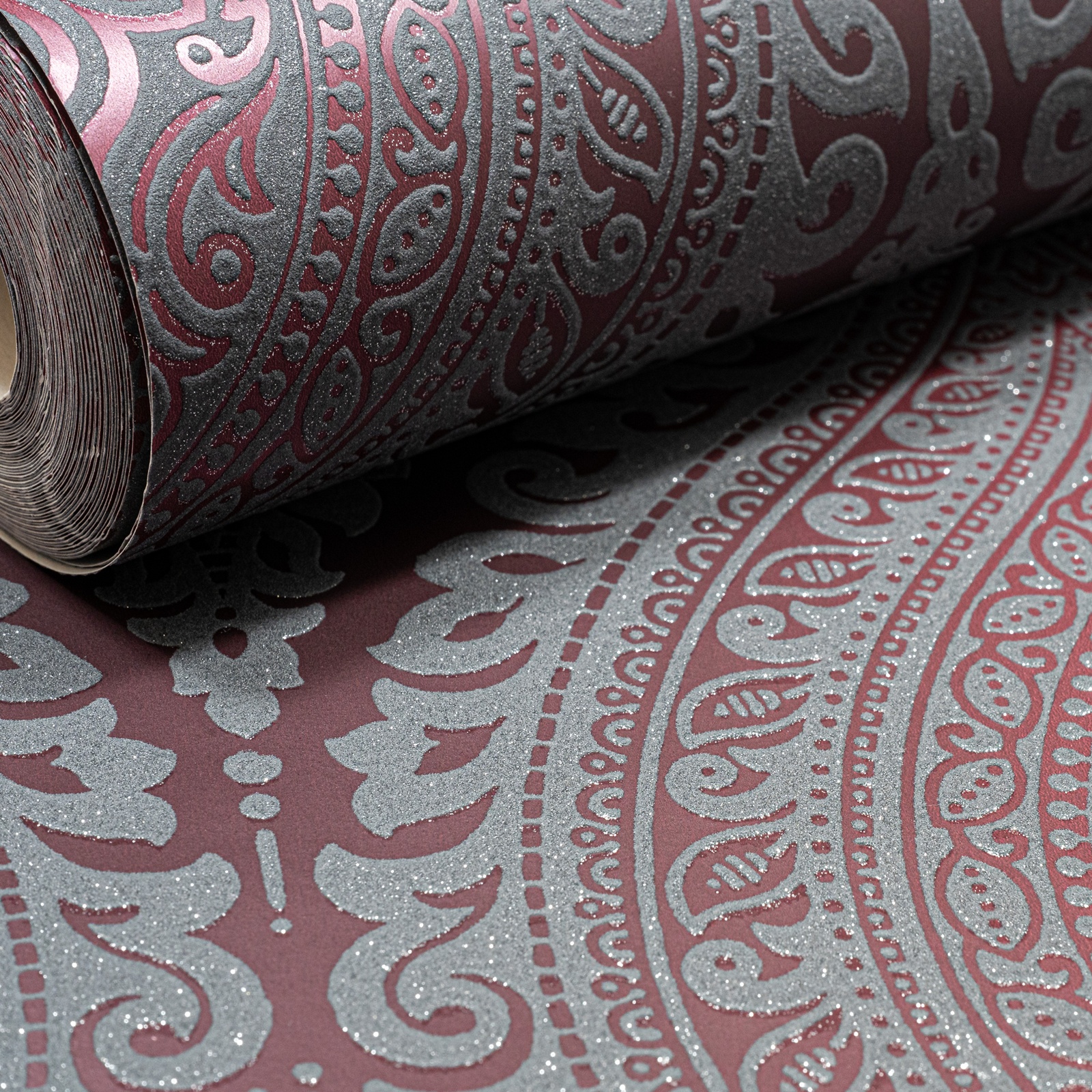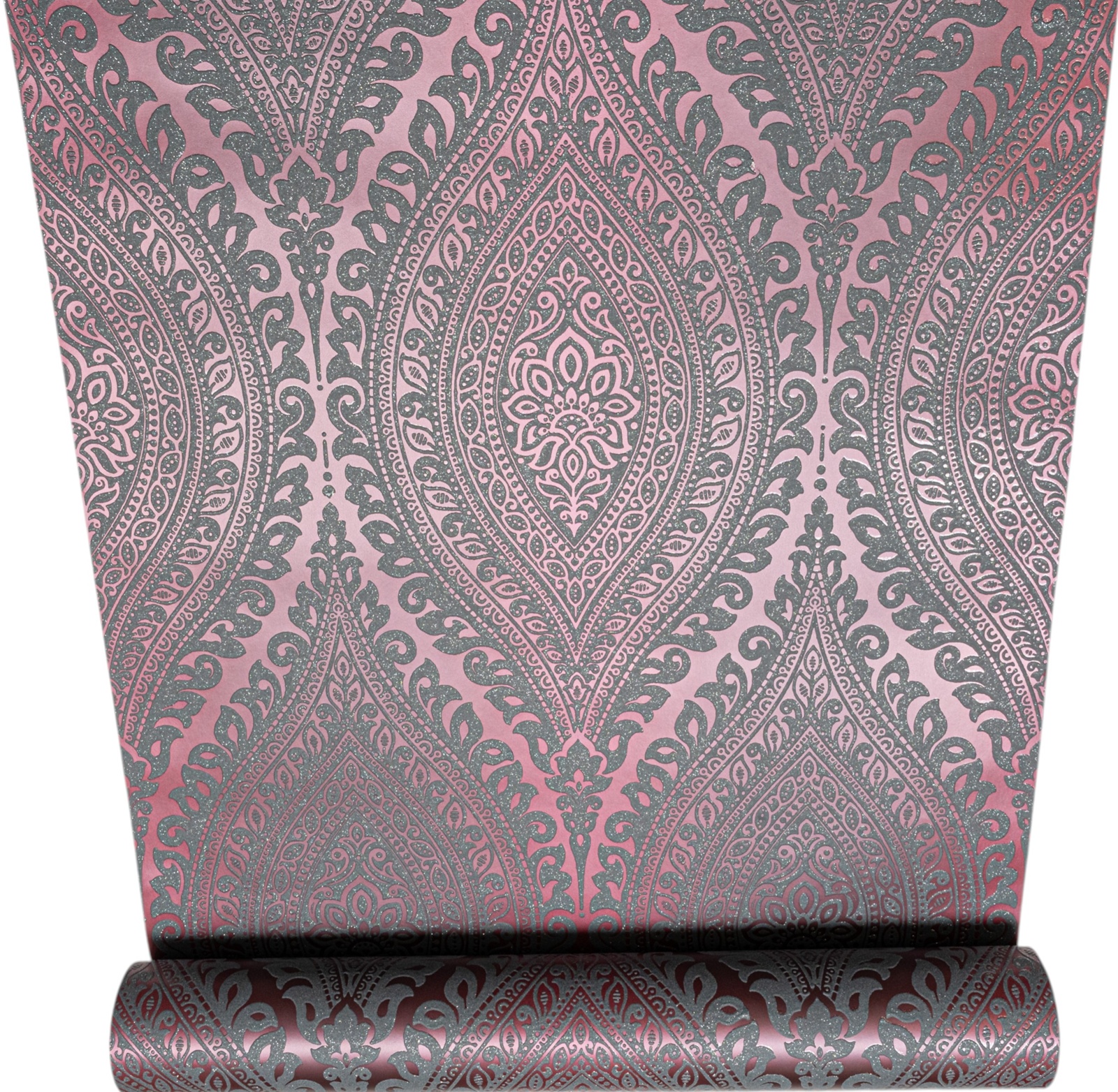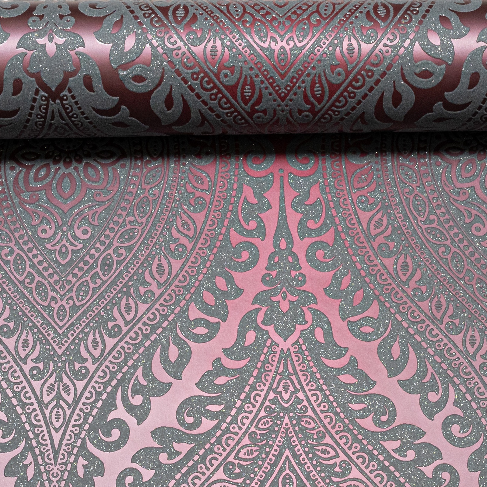 Plum Damask Metallic Slightly Imperfect Wallpaper