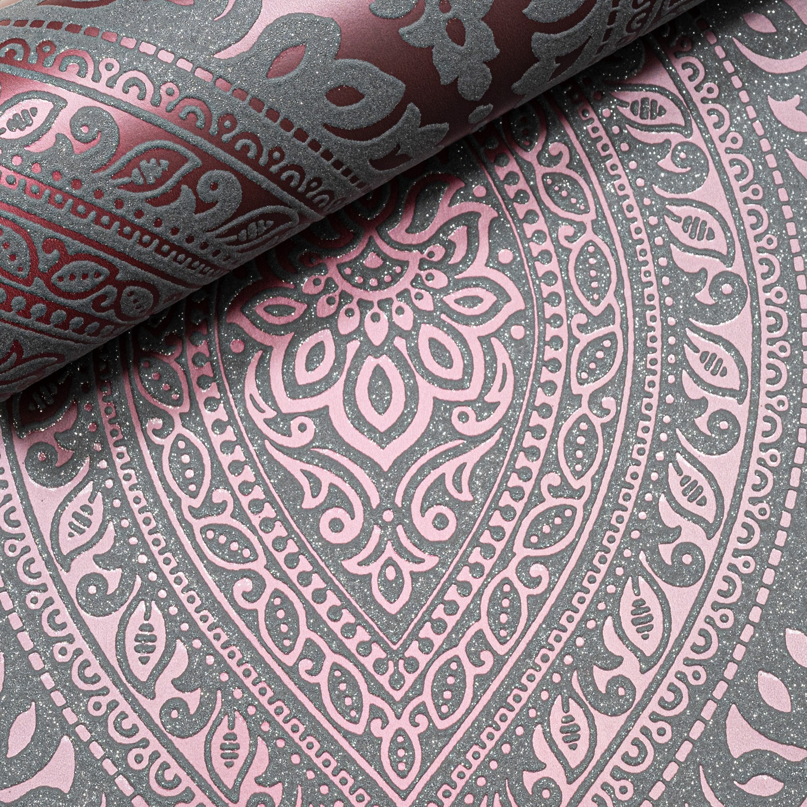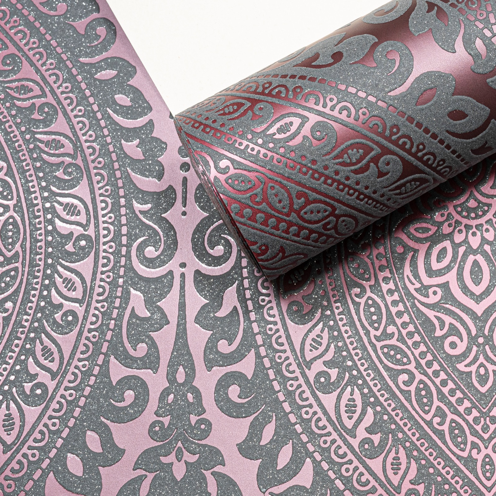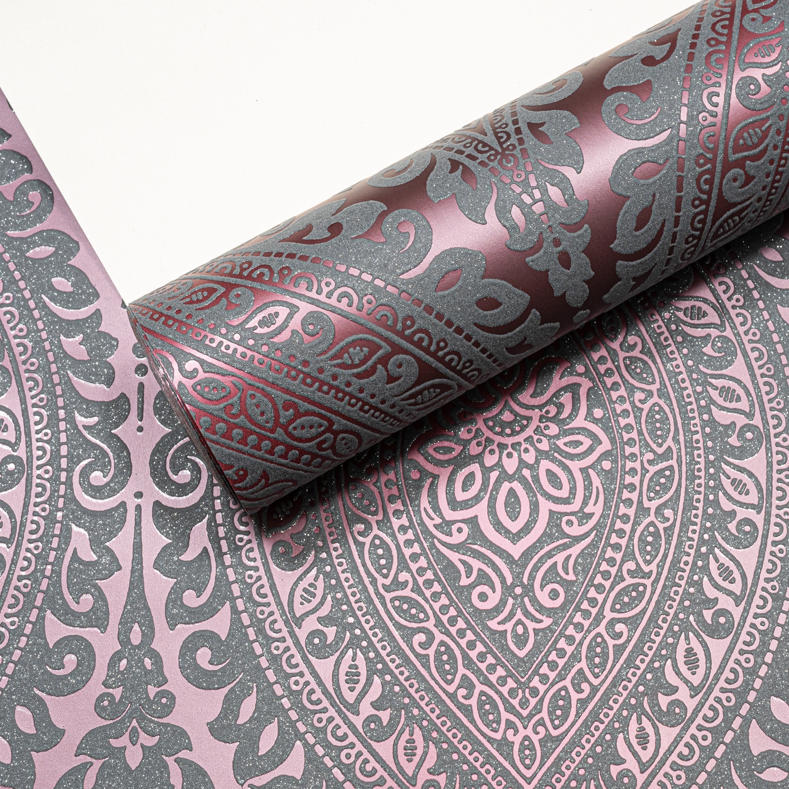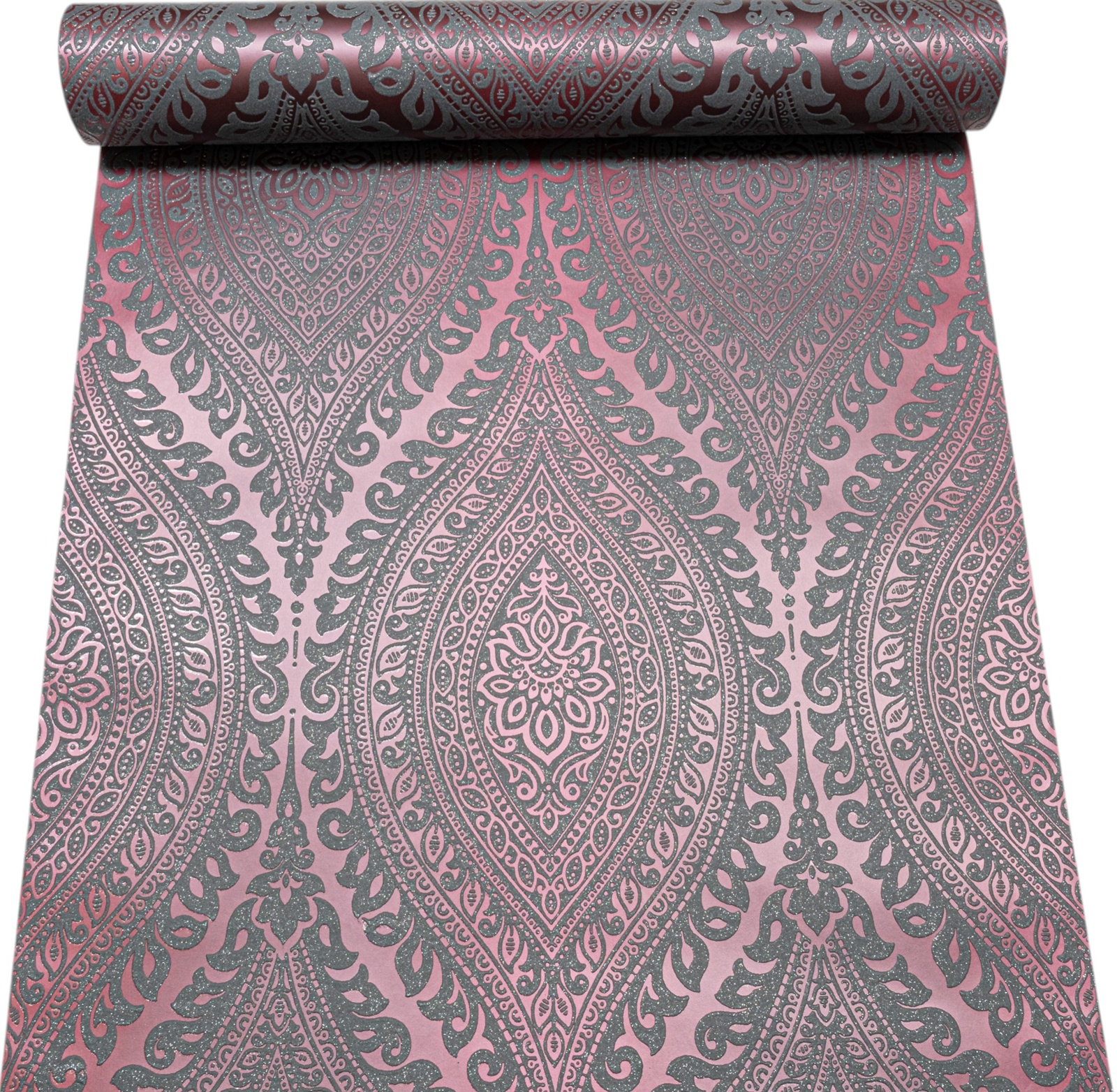 Plum Damask Metallic Slightly Imperfect Wallpaper